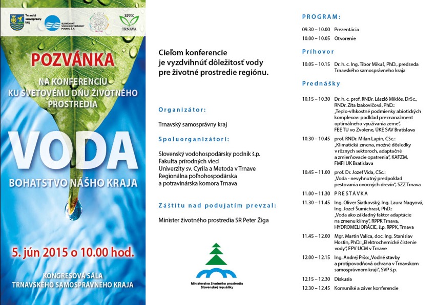On 22 April 2013,Chairman of the Trnava Self-Governing Region, Dr. h. c. Ing. Tibor Mikuš, PhD., honoured Assoc. Prof. Dr. habil. RNDr. Juraj Lesný, PhD., Tit. Univ. Prof., Head of the Department of Ecochemistry and Radiology, with a Memorable Medal of the Chairman of the Trnava Self-Governing Region for the protection and enhancement of the environment in Slovakia. More information
