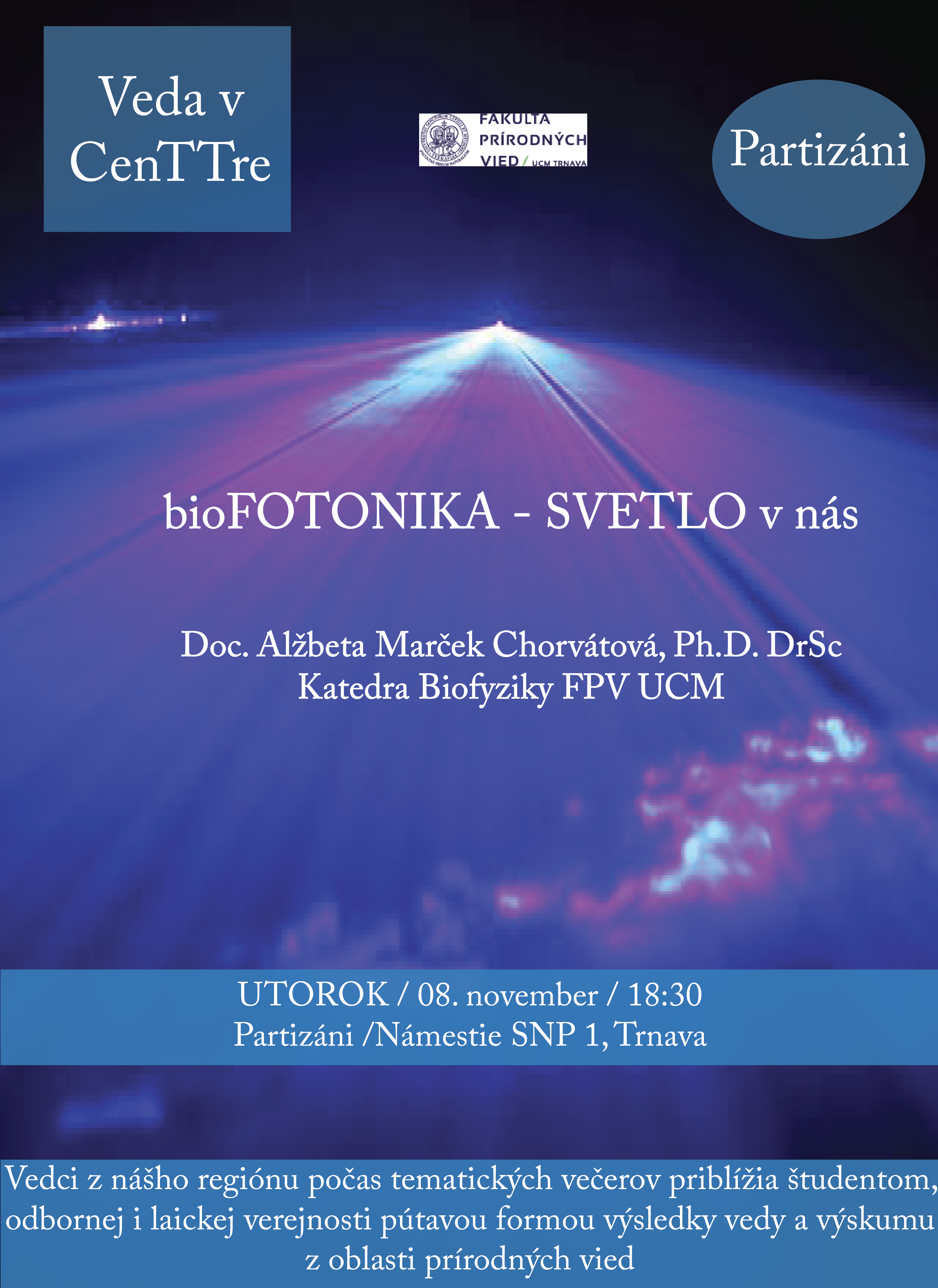 The Faculty of Natural Sciences (FPV) is going to participate in the “Researchers’ Night 2013“, which will take place on Friday 27 September 2013 in Bratislava, with two presentations: