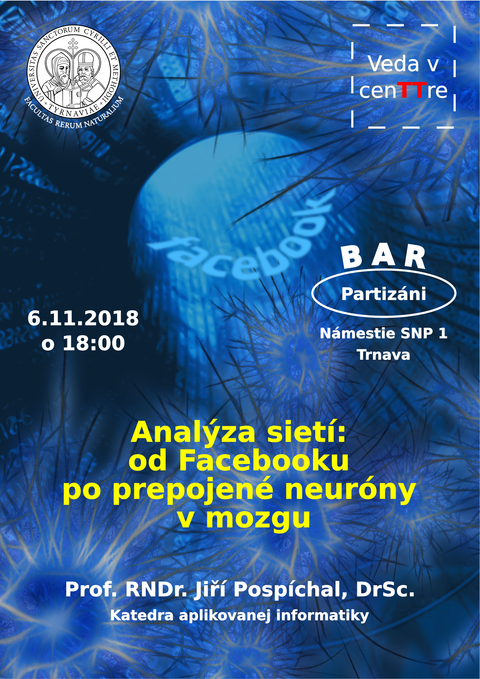 Dňa 6. novembra 2018 sa uskutočnila prednáška prof. RNDr. Jiřího Pospíchala, DrSc. na tému "od Facebooku po prepojené neuróny v mozgu" v priestoroch diskusného klubu Partizáni so začiatkom o 18:00 hod. Po jej skončení nasledovala plodná diskusia. Doplňujúce informácie